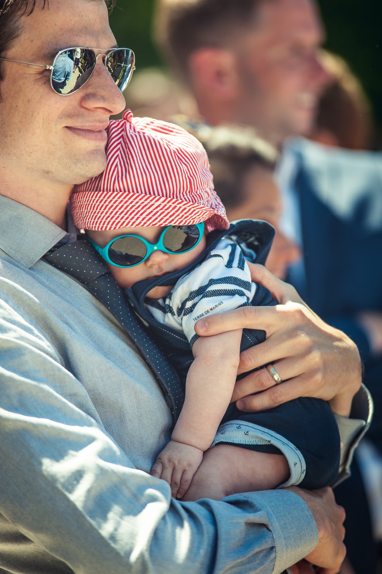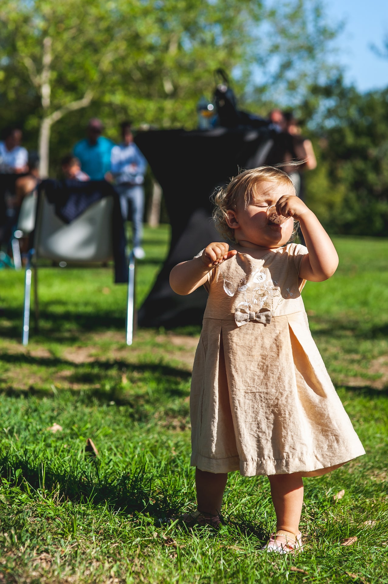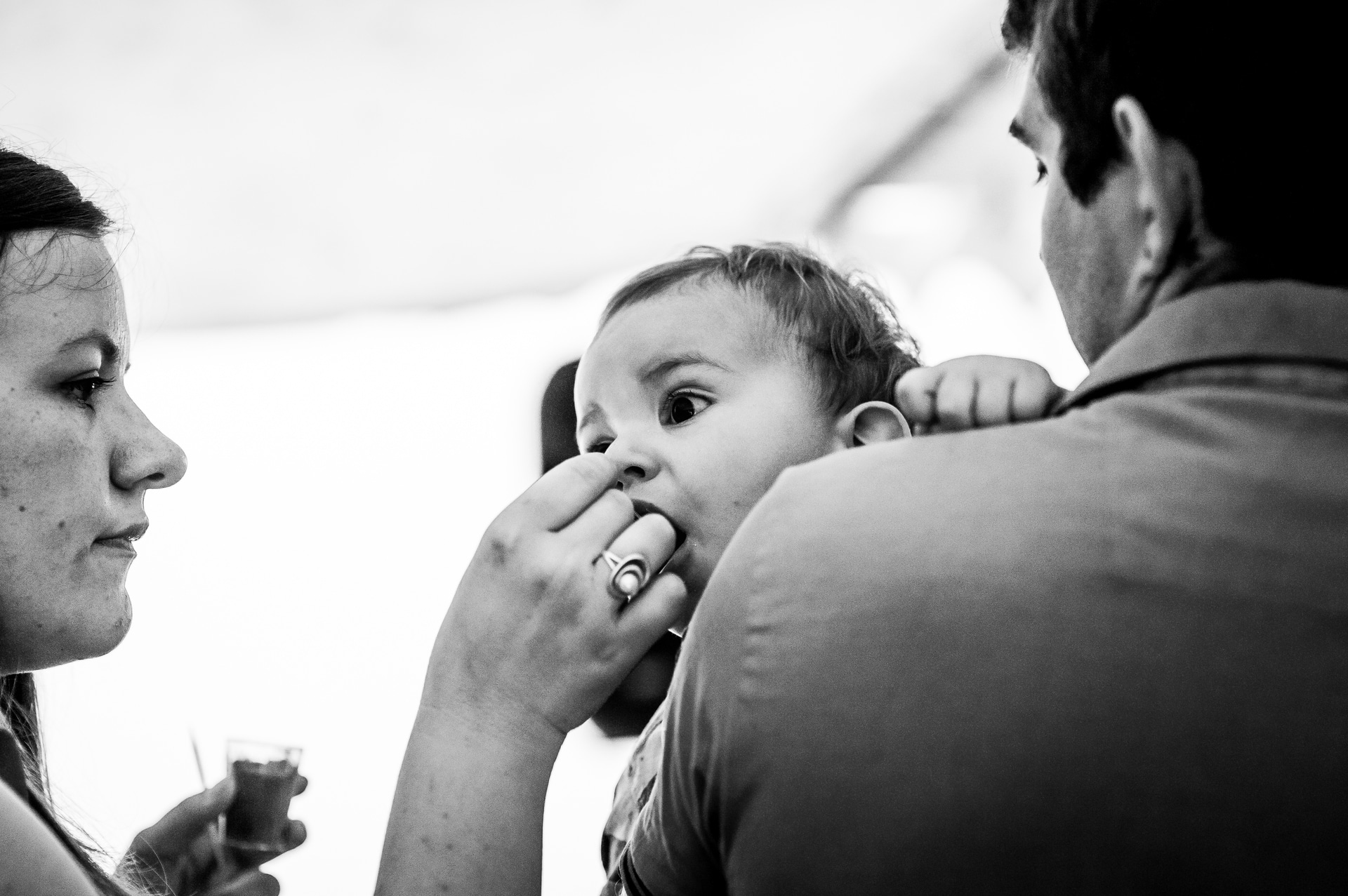 Après toutes ces heures d’attente cérémonieuse, les enfants peuvent enfin se défouler, les adultes se munissent d’un verre et discutent, le moment est effectivement sous le signe de la détente. Le vin d’honneur est propice aux portraits et aux moments insolites volés. Si on fait abstraction des photos de groupes (il faut être réaliste, personne n’aime ça), j’apprécie ce moment car j’ai enfin l’occasion de discuter avec les invités, de trinquer au détour d’un buffet, de me fondre un peu plus dans la masse. De plus la lumière est souvent harmonieuse pour photographier.
